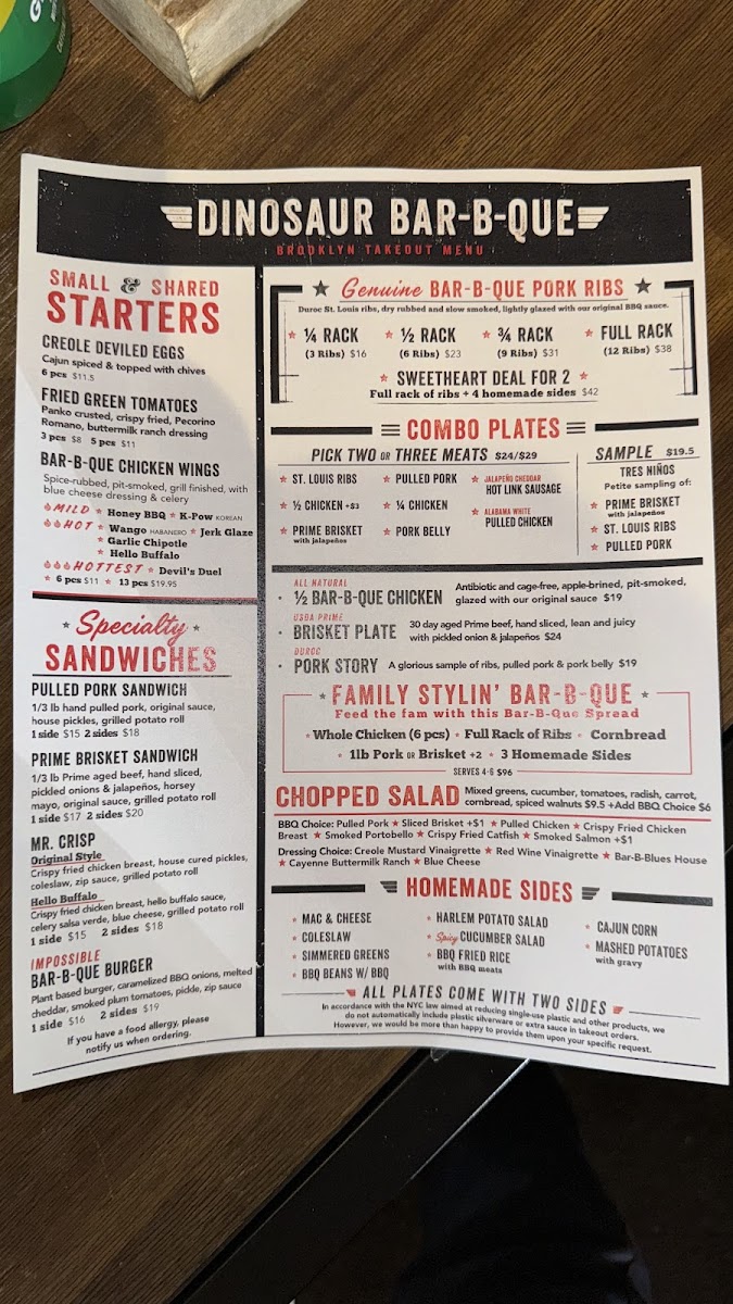 Dinosaur Bar-B-Que excels in its robust selection of dishes that are sure to delight any palate. Among the crowd favorites, the ribs and brisket steal the spotlight, delivering smoky, tender bites that practically melt in your mouth. Customers rave about the pork options too, with pulled pork and pork belly drawing praise for their juicy, flavorful profiles. And let’s not forget the sides—everything from their delicious cornbread to tangy coleslaw complements the BBQ perfectly.