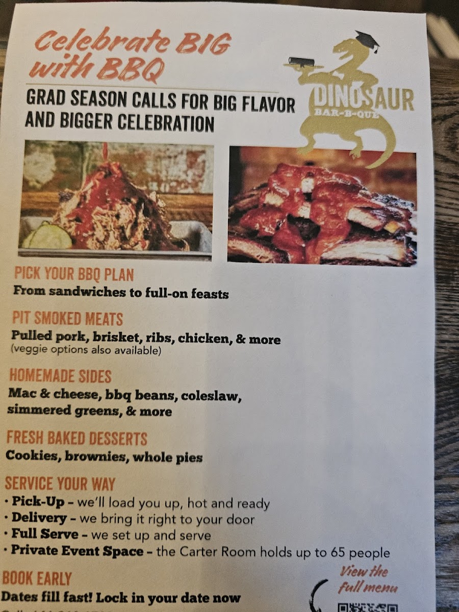 Whether you're a barbecue aficionado or a curious first-timer, Dinosaur Bar-B-Que promises an experience filled with flavor, good vibes, and a sense of community. Next time you’re in the area, be sure to stop by for a meal that symbolizes the heart and soul of BBQ culture.