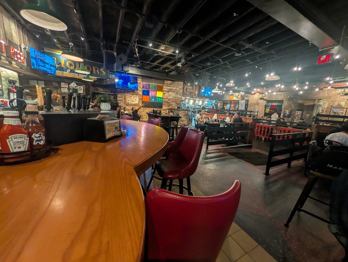 The atmosphere is vibrant and inviting, with décor reminiscent of classic Texas BBQ joints, creating a warm and relatable environment perfect for a chilled night out with friends or a casual family dinner. The bar area offers a great spot for a quick bite, paired with a refreshing drink to kick back and relax.